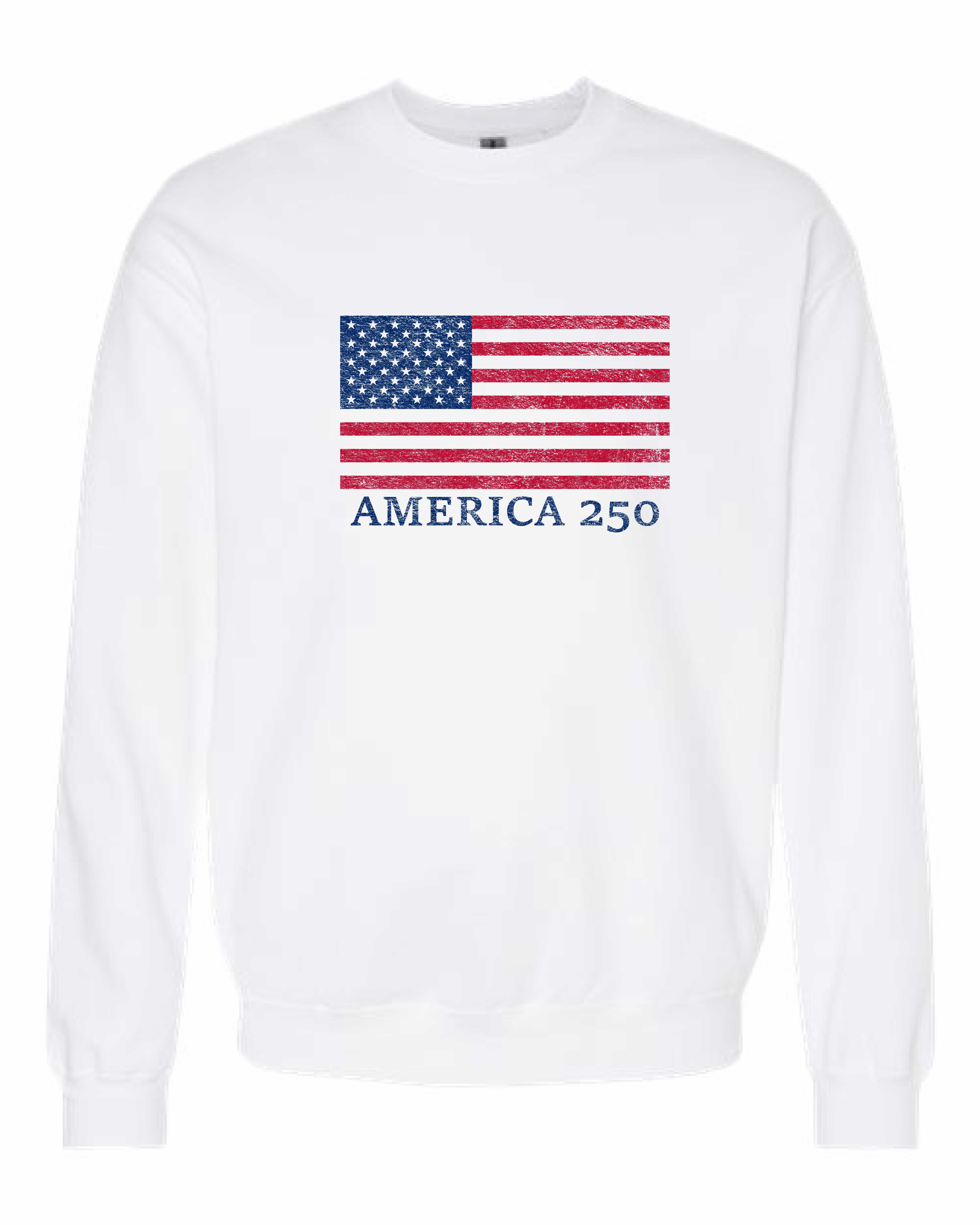 Soft unisex Gildan crewneck sweatshirt with a print to celebrate America’s 250th birthday Choose from a Grey, White, Sand, Stone Blue, Brown Savanna or Ash sweatshirt.