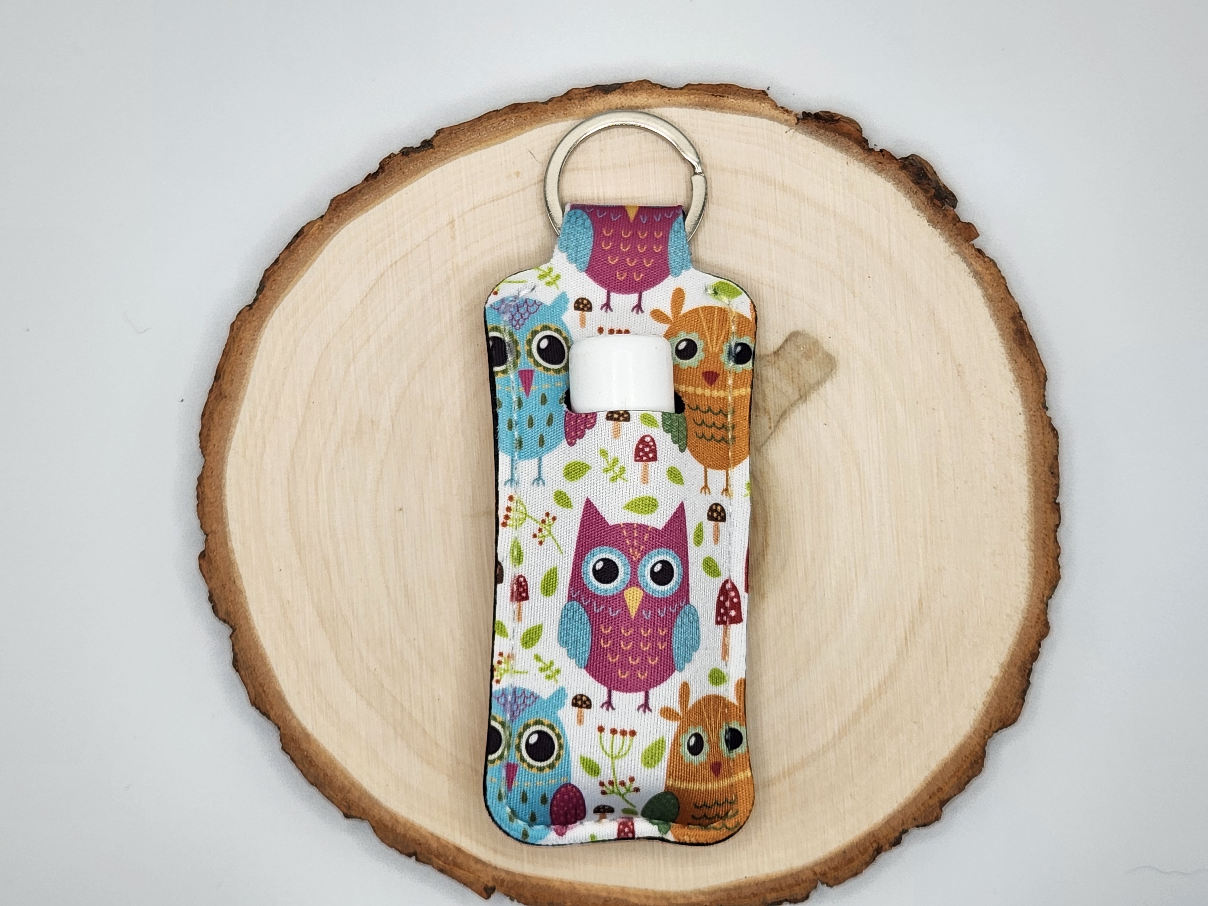 Cute item for keychain or backpack or purse. Holds chapstick and keeps it convenient. It comes in lots of designs too. Great price and makes a great gift.