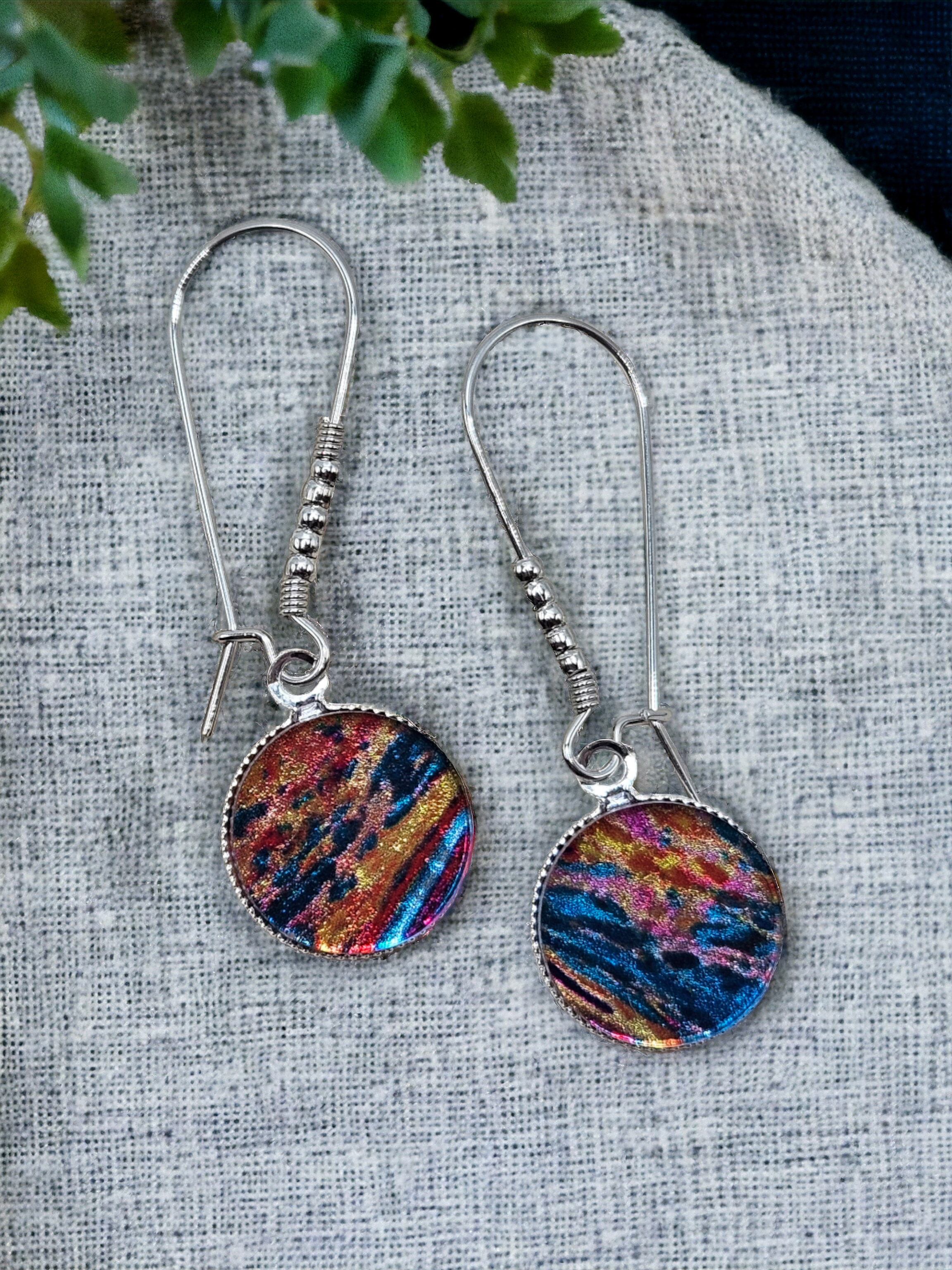 These beautiful dangle earrings go with everything. A line of silver beads decorate the hoop and add a touch of sparkle.