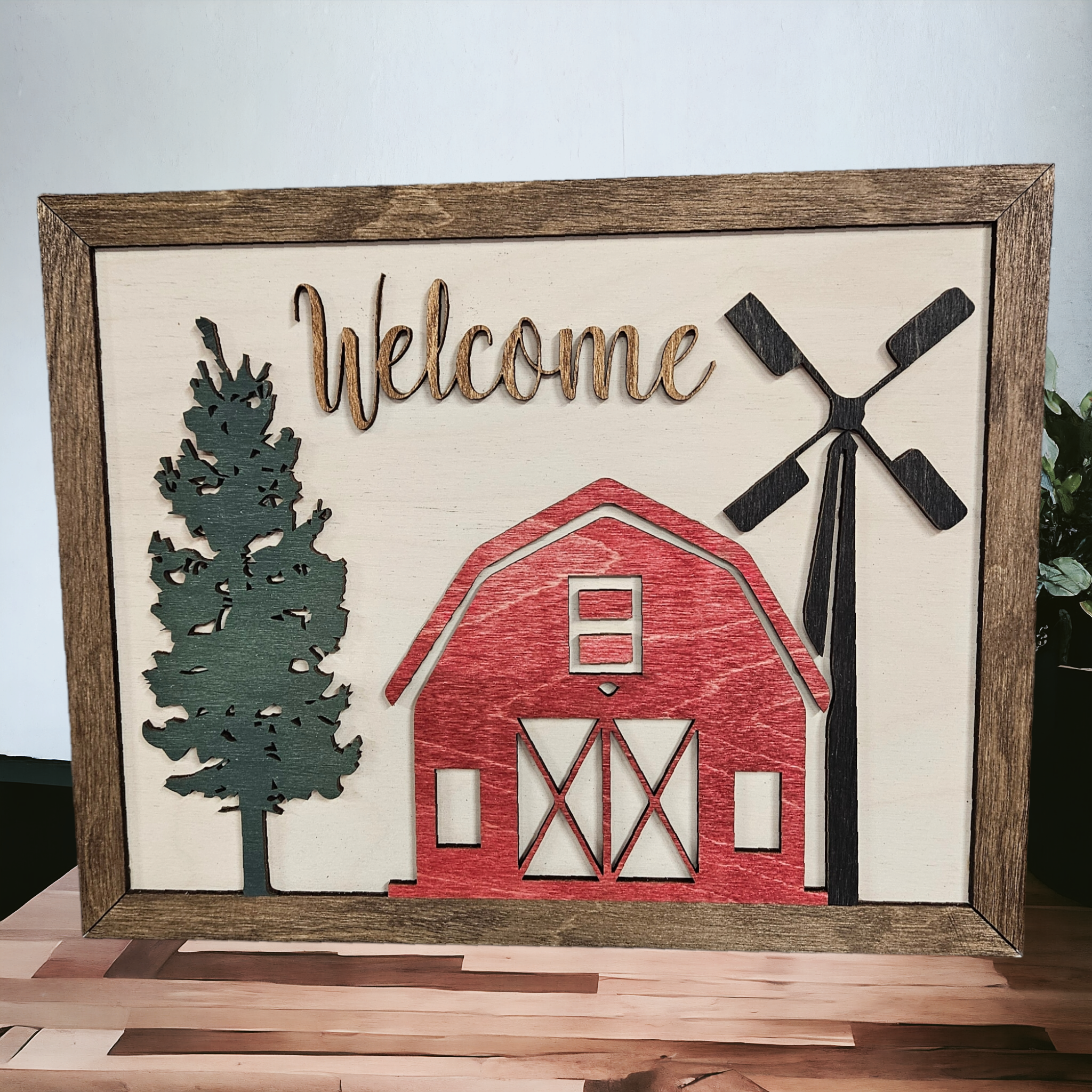This cute country farm sign is a great addition to your home or give as a gift to someone who loves to farm! This sign is made of birch layers stained to create a beautiful scene.