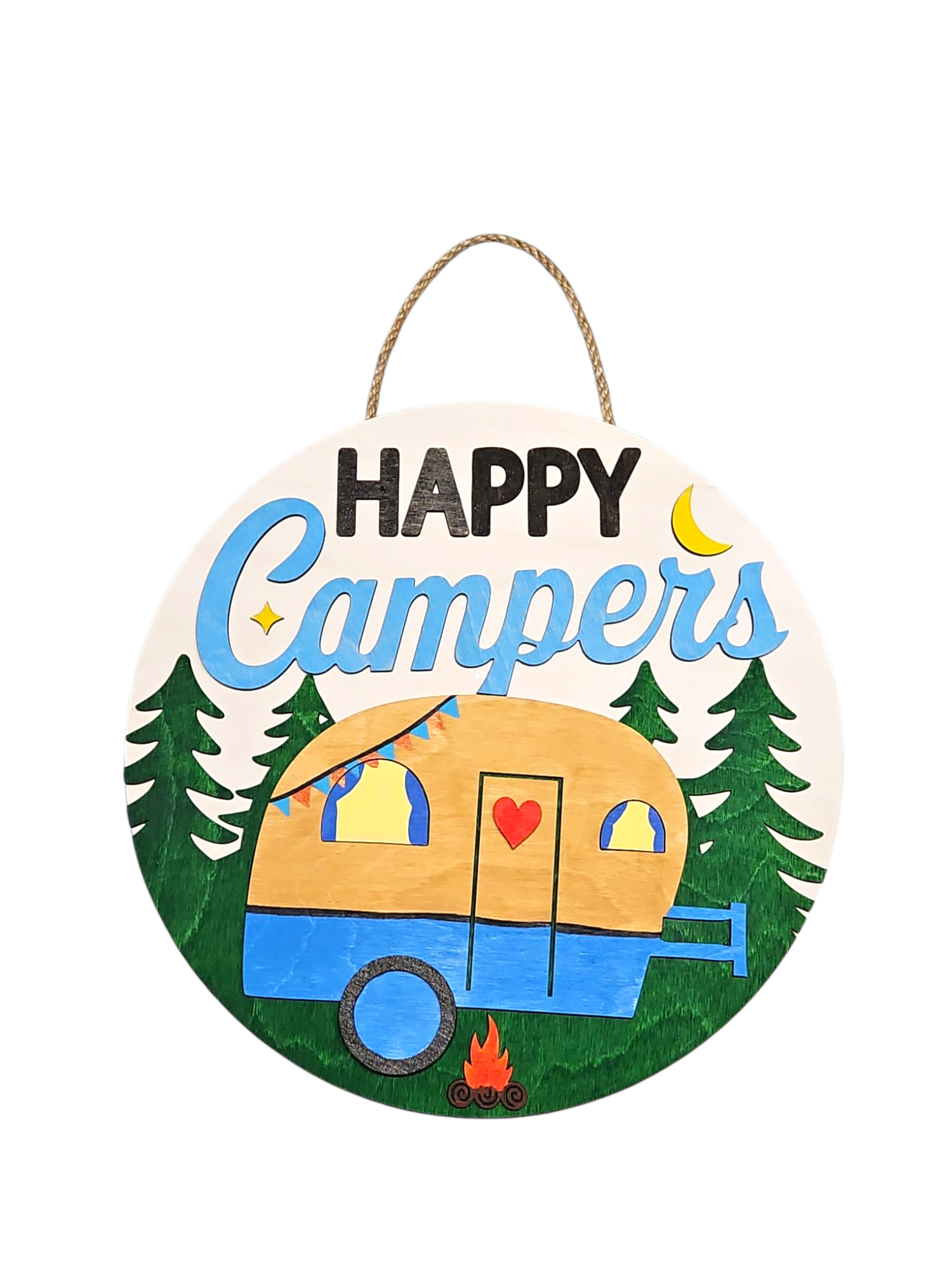 12″ round sign. This sign is multi-layered painted wood and comes finished and ready to hang.