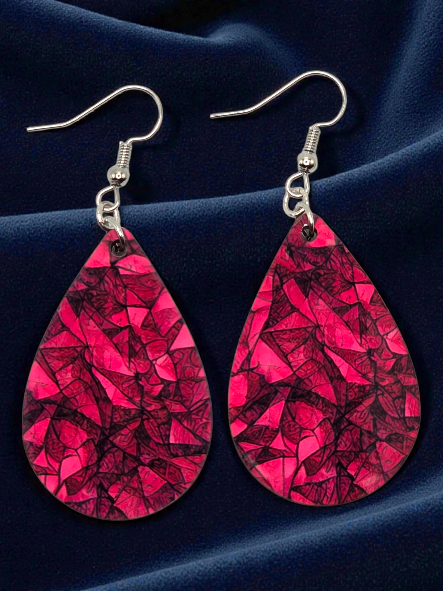 Lightweight 1.5″ teardrop earrings. Image on both sides.