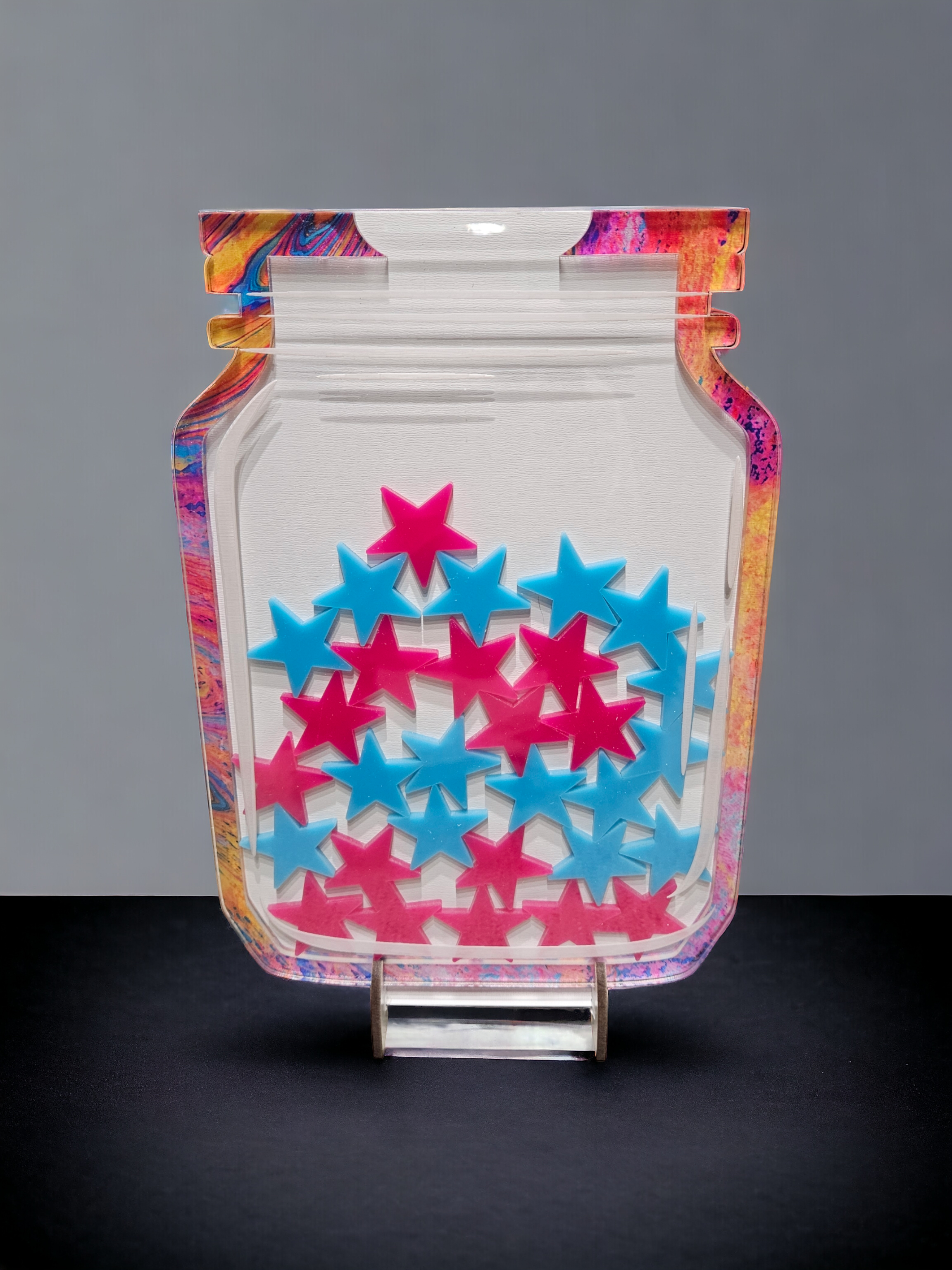 This reward jar isn’t just for kids! Motivate yourself or your family for 30 days and reap the reward at the end. Trying to kick a bad habit? Need your kids to stay on track with chores? Working towards a fun family day? This reward jar is perfect for everyone needing a little bit of motivation and a visual reminder. This jar comes in a fun vibrant print with fuchsia and blue stars.