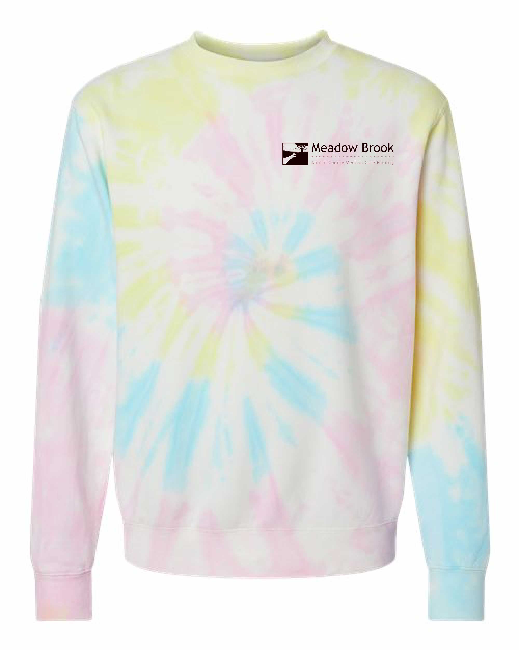 Independent Trading Co unisex soft cotton tie dye crewneck sweatshirt. Left chest log in black print.